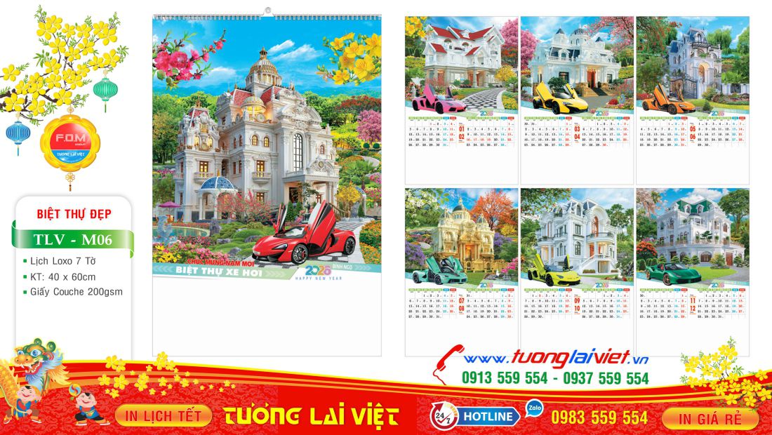 Lịch Lò Xo 7 Tờ Nhà Và Xe là Mẫu lịch treo tường được nhiều đơn vị, cơ sở chọn In lịch tết làm quà tặng cho khách hàng, bạn bè, đối tác và người thân nhân dịp năm mới. In Lịch Treo Tường 7 Tờ giá rẻ với chi phí vừa phải phù hợp với các đơn vị, cơ sở nhỏ lẻ như: Tiệm Tạp Hoá, Cửa hàng Gas, Cửa hàng Gạo, Cửa hàng Bánh Kẹo, Cửa hàng Xăng Dầu, Cửa hàng Vật Liệu Xây Dựng, …