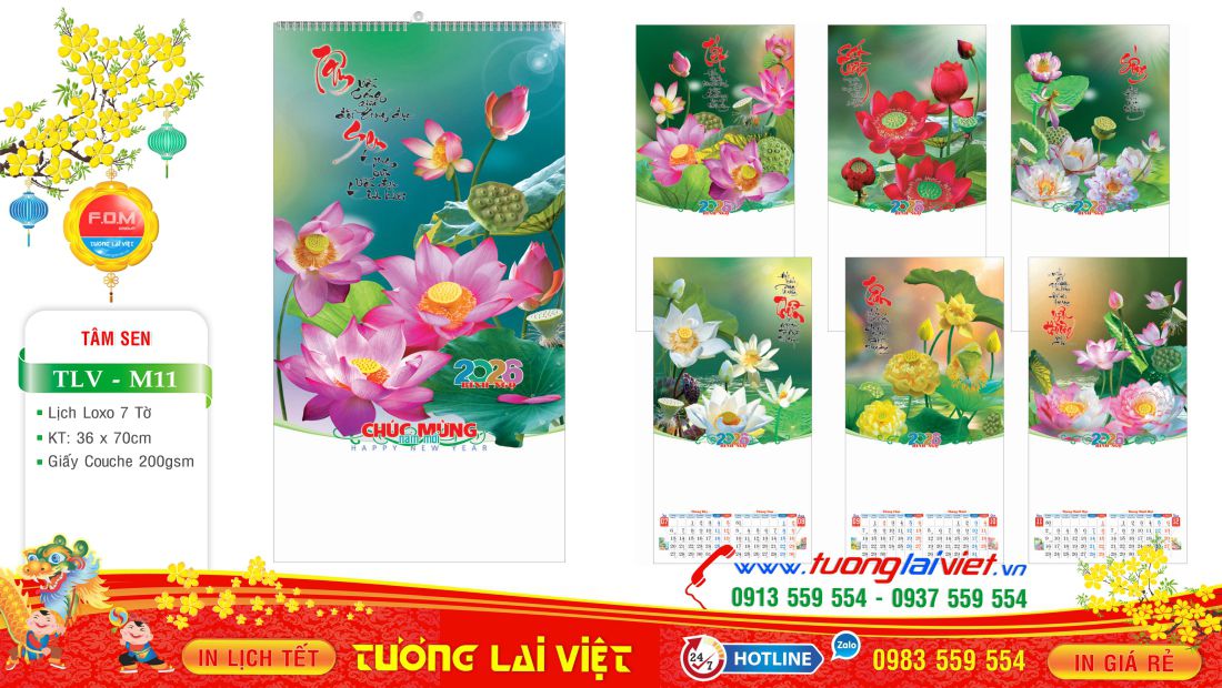 - Lịch Lịch Lò Xo 7 Tờ Sen Việt được nhiều đơn vị, cơ sở chọn In Lịch Tết làm quà tặng khách hàng.